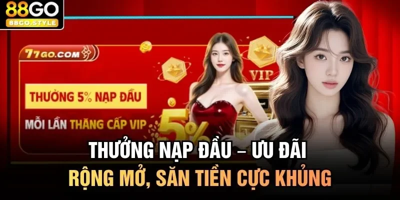Chương trình khuyến mãi 88GO nạp đầu luôn tâm điểm thu hút sự chú ý của cộng đồng đầu tư chuyên nghiệp. Hội viên thực hiện giao dịch chuyển tiền lần thứ nhất sẽ nhận ngay khoản thưởng tương ứng với giá trị nạp vào.